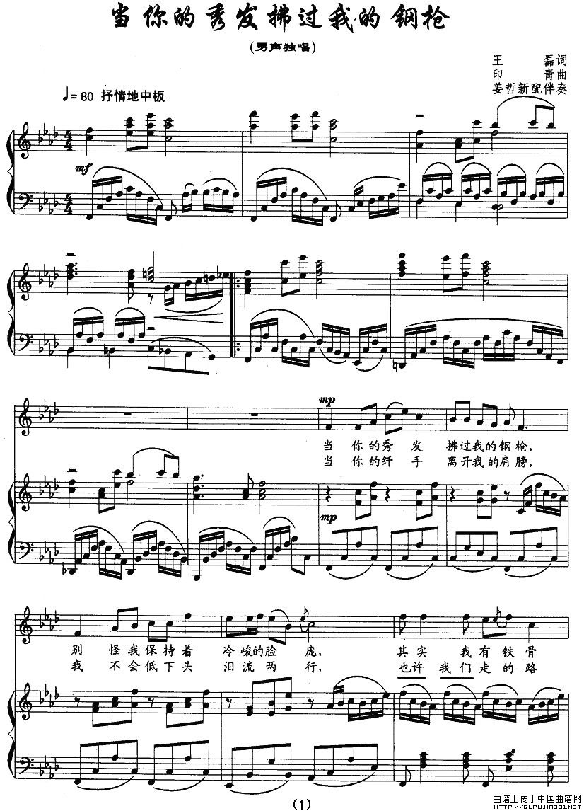 曲谱:当你的秀发拂过我的钢枪(王磊词 印青曲、正谱)