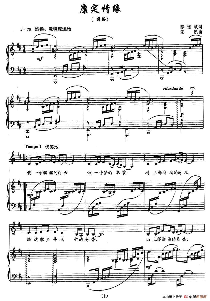 曲谱:康定情缘(陈道斌词 栾凯曲、正谱)