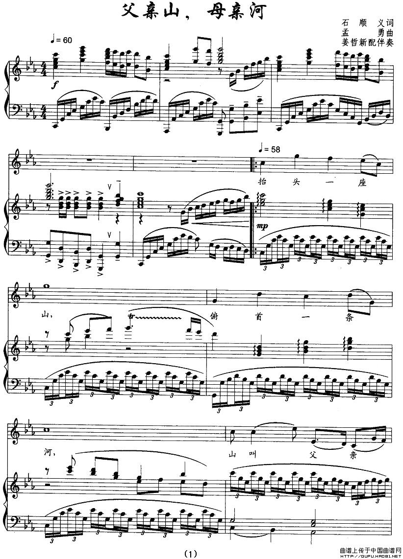 曲谱:父亲山,母亲河(正谱)