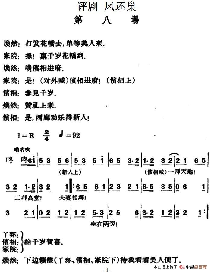曲谱:凤还巢 (第八场)