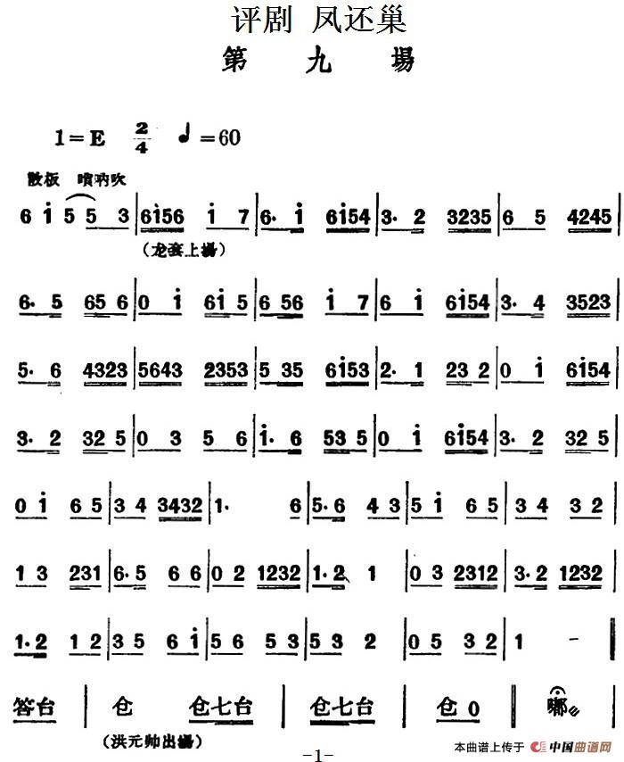 曲谱:凤还巢 (第九场)
