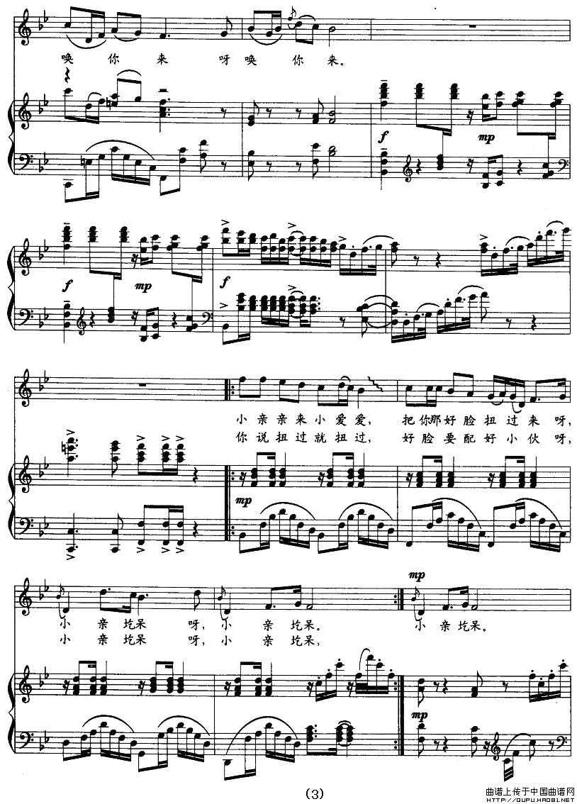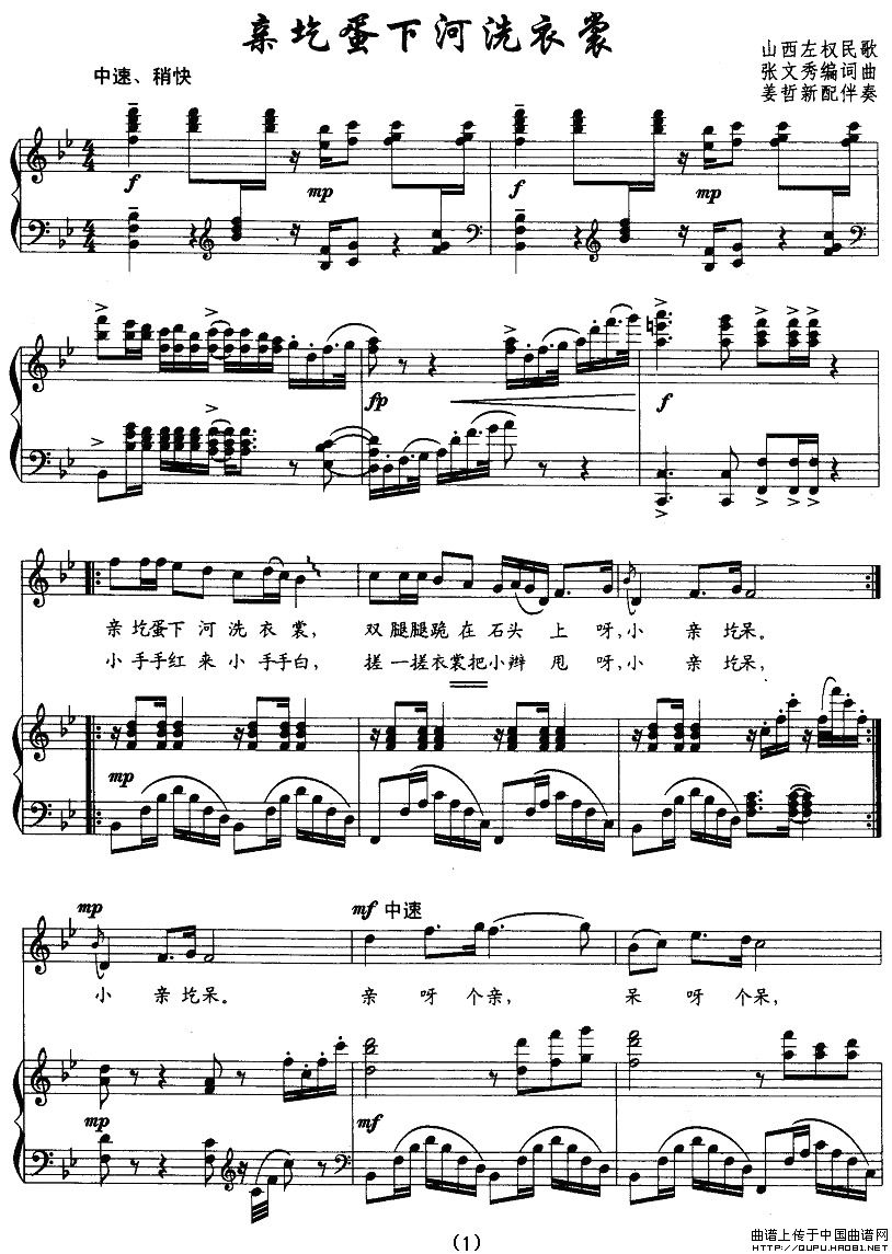曲谱:亲圪蛋下河洗衣裳(正谱)