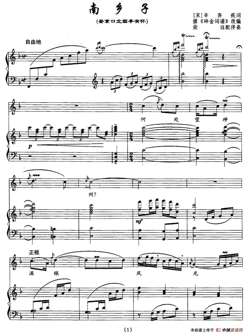 曲谱:南乡子(登京口北固亭有怀)( 正谱)