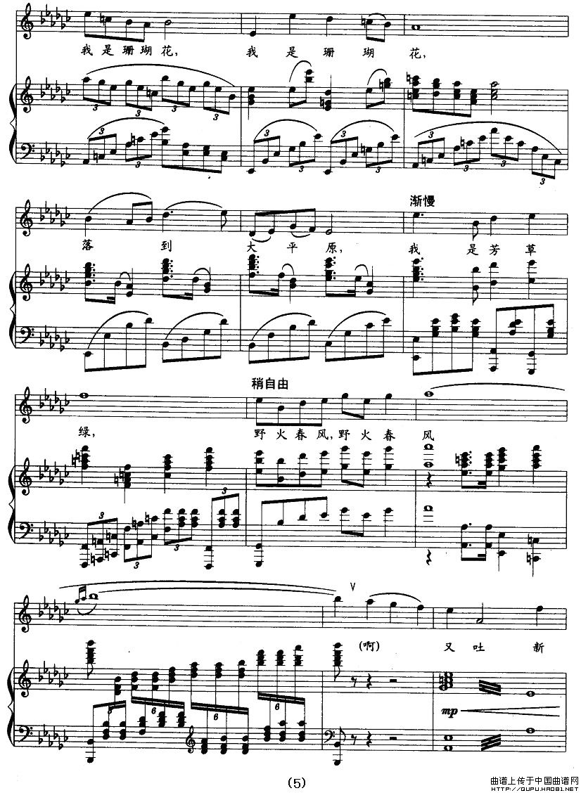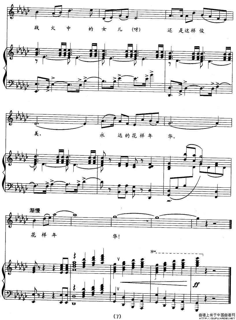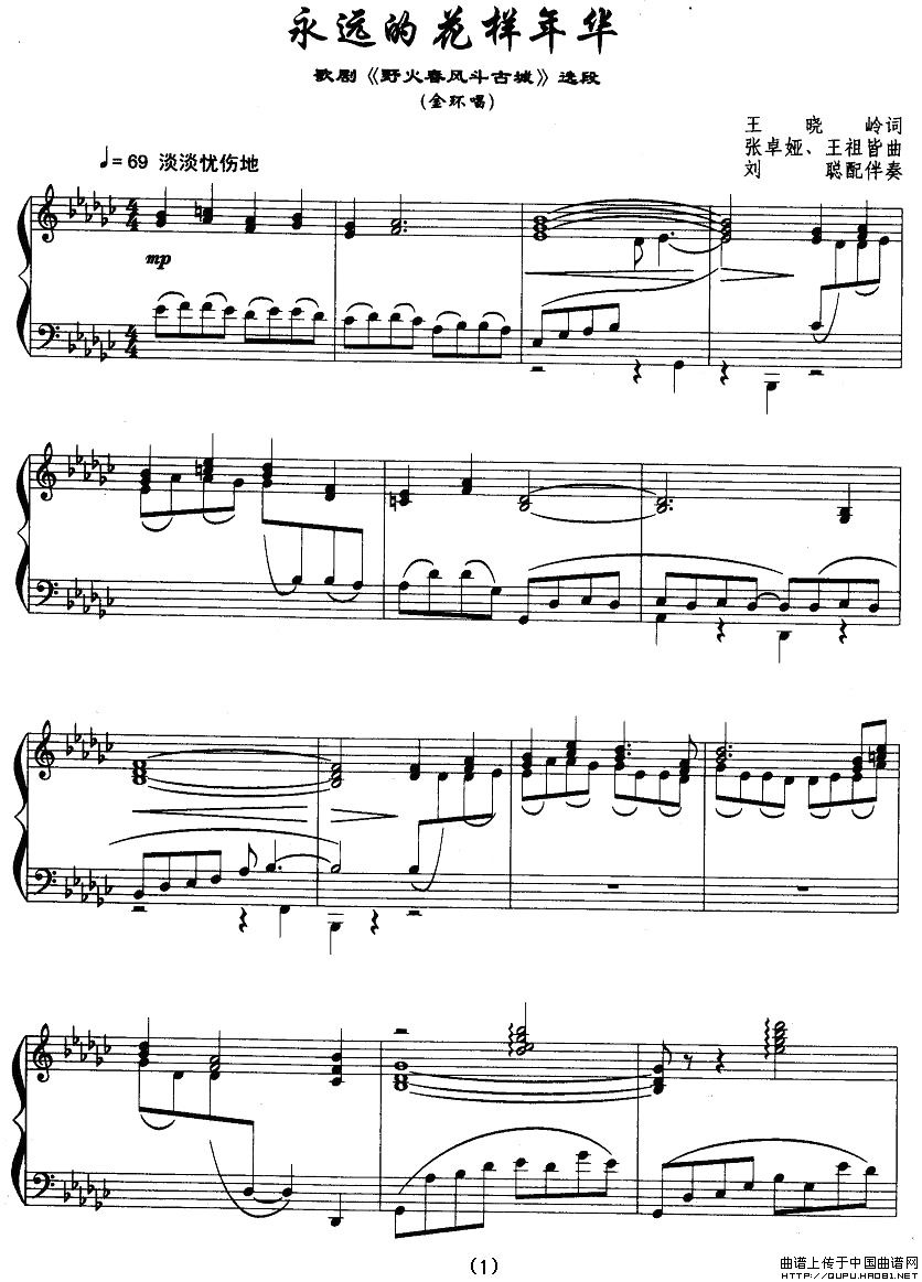 曲谱:永远的花样年华(歌剧《野火春风斗古城》金环唱段 、正谱)