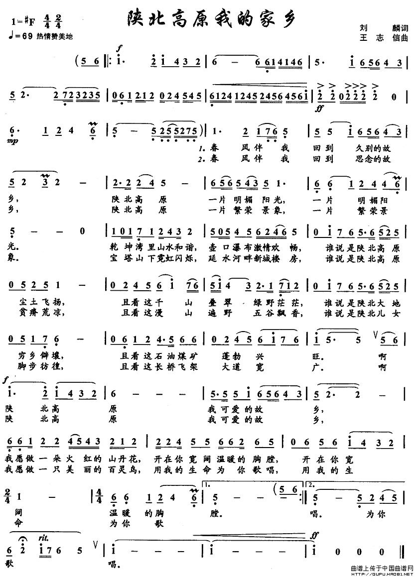 曲谱:陕北高原我的家乡