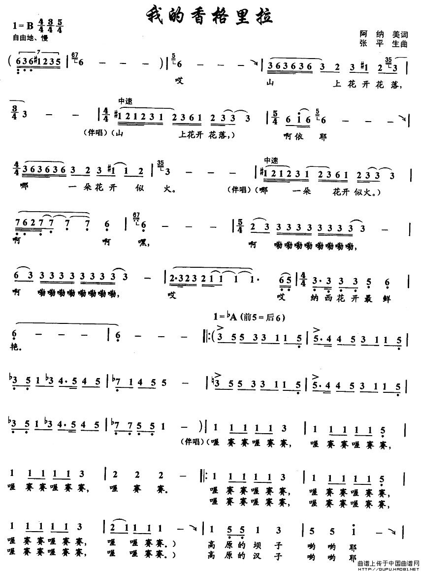 曲谱:我的香格里拉(阿纳美词 张平生曲)