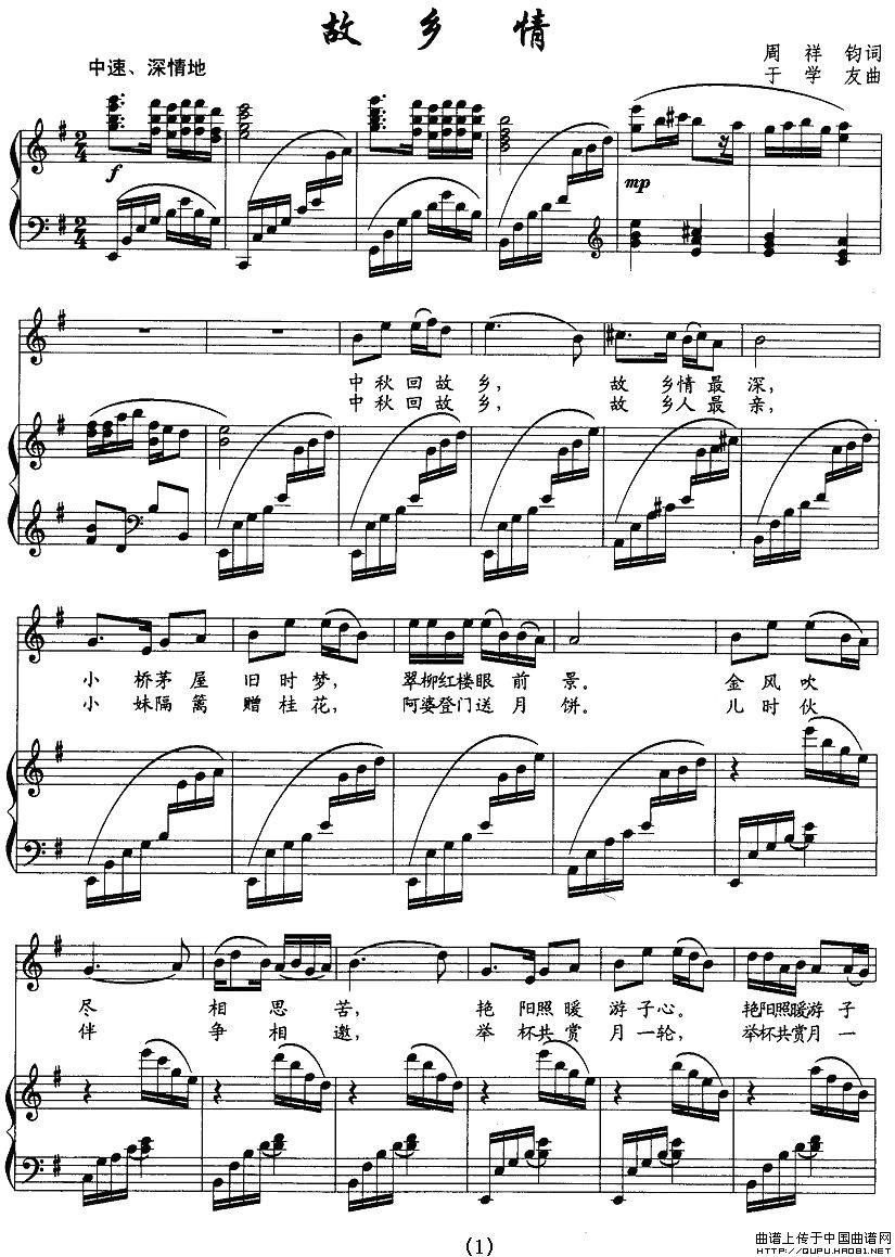 曲谱:故乡情(周祥钧词 于学友曲、正谱)