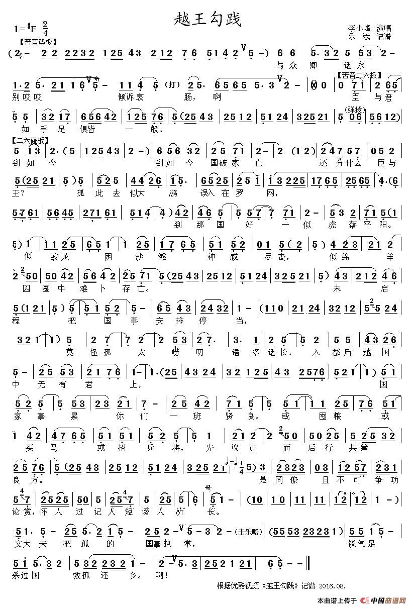 曲谱:[秦腔]越王勾践