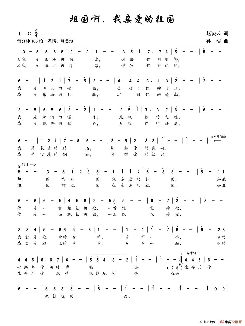 曲谱:祖国啊,我亲爱的祖国(赵凌云词 孙洁曲)