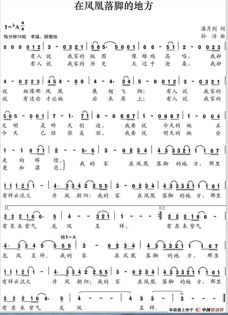 曲谱:在凤凰落脚的地方