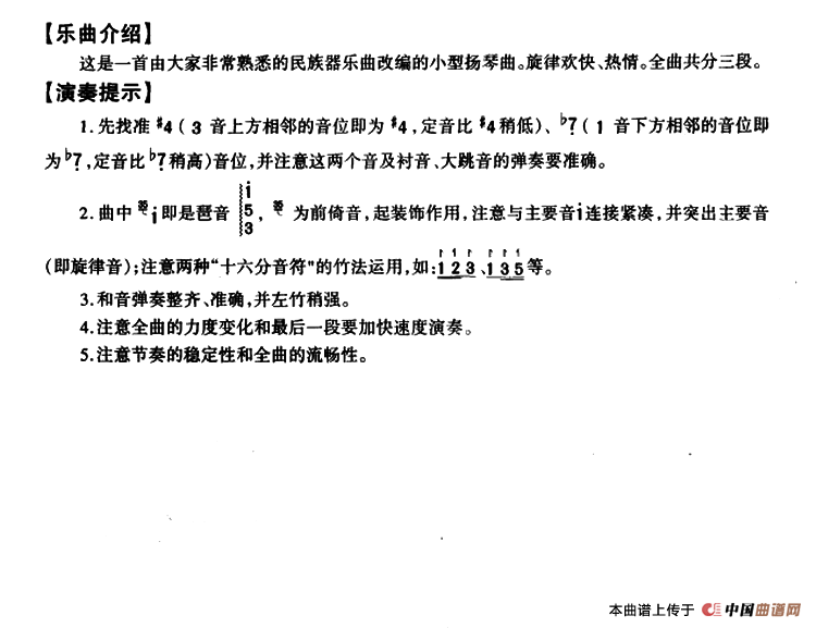 版本二:选自《扬琴考级曲集 考级辅导用书》一级