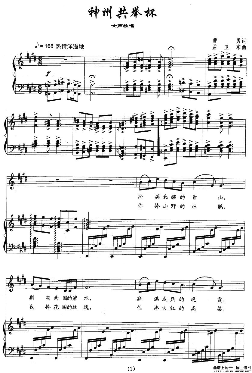 曲谱:神州共举杯(正谱)