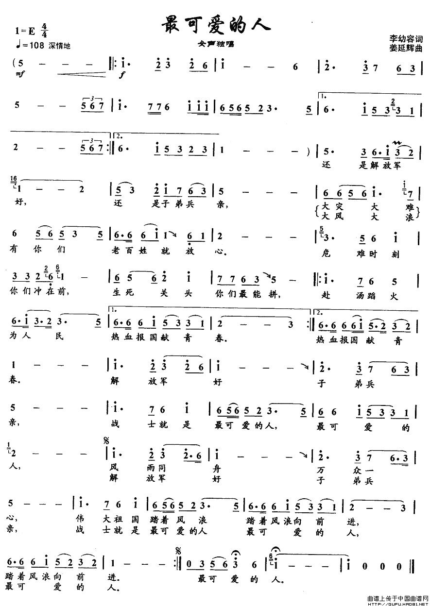 曲谱:最可爱的人(李幼容词 姜延辉曲)