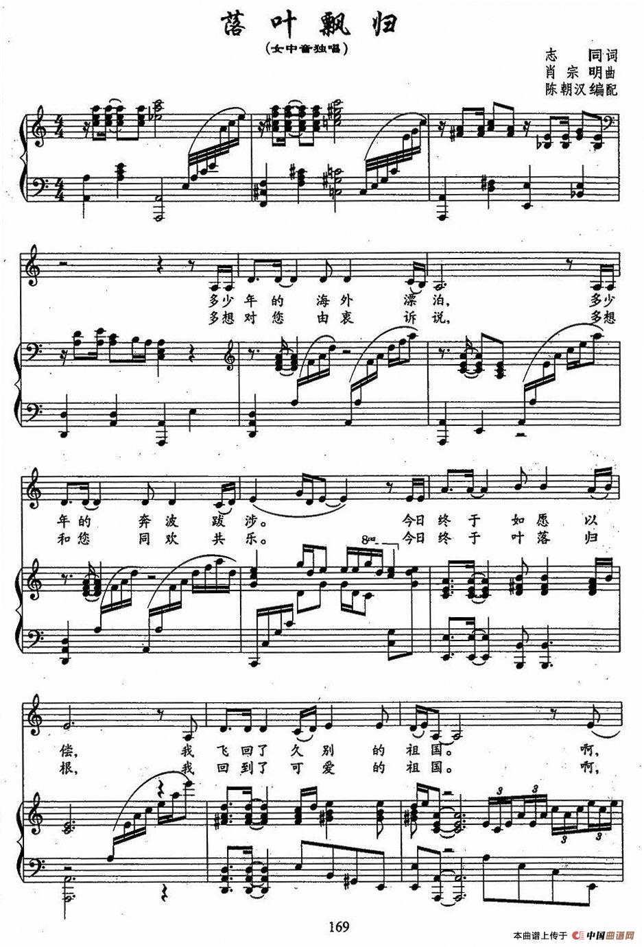 曲谱:落叶飘归(志同词 肖宗明曲、正谱)