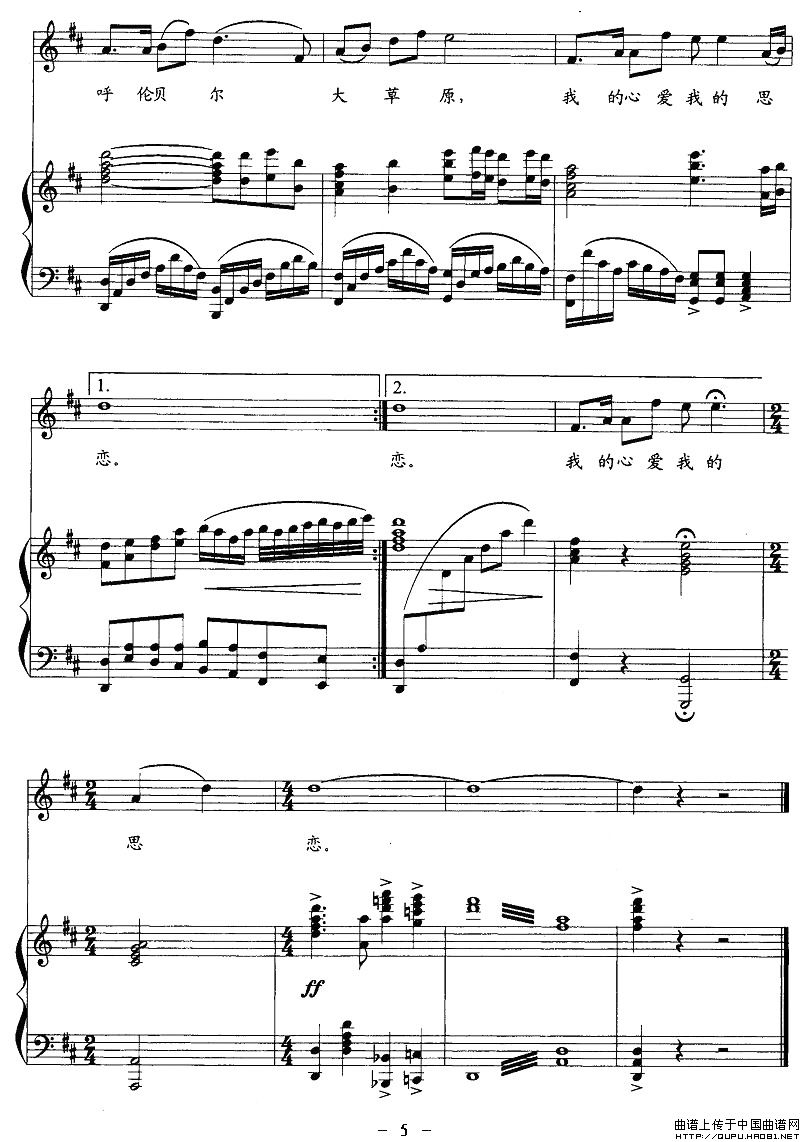 曲谱:呼伦贝尔大草原(克明词 乌兰托嘎曲、正谱)