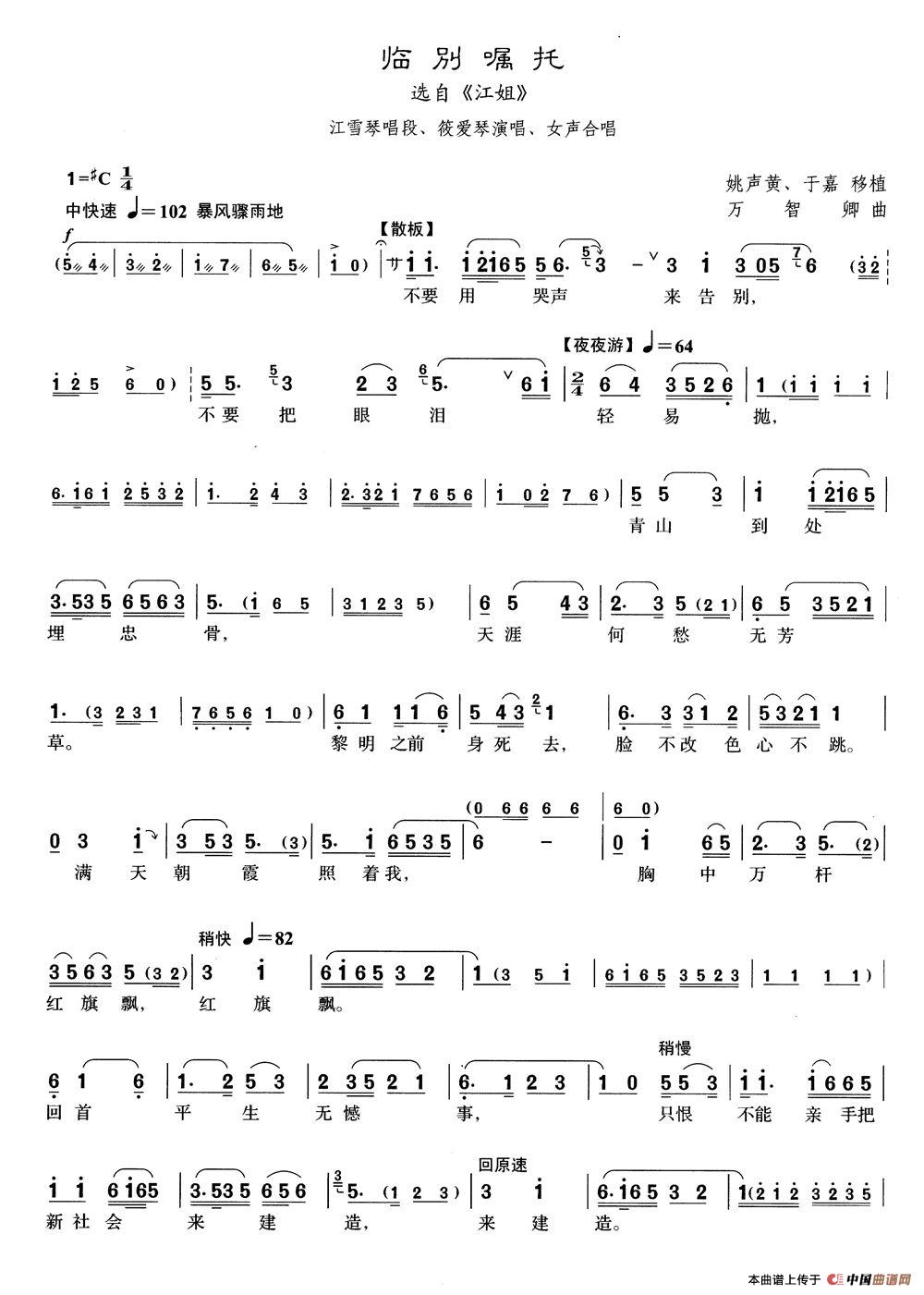 曲谱:[沪剧]临别嘱托(《江姐》江雪琴唱段)