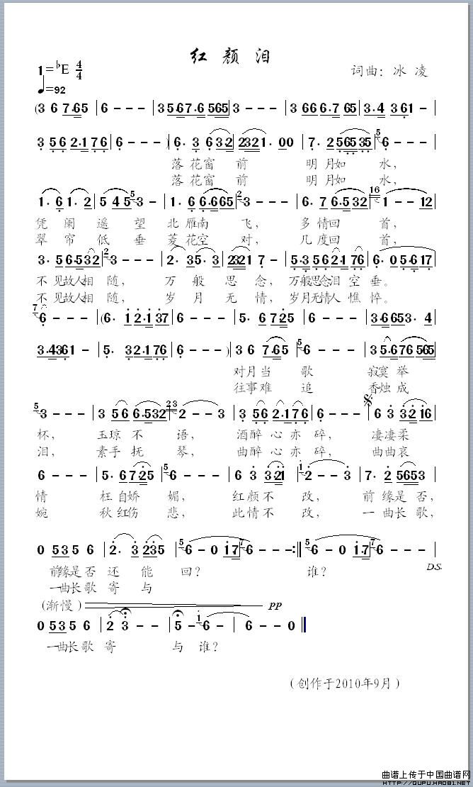 曲谱:红颜泪(冰凌词曲)