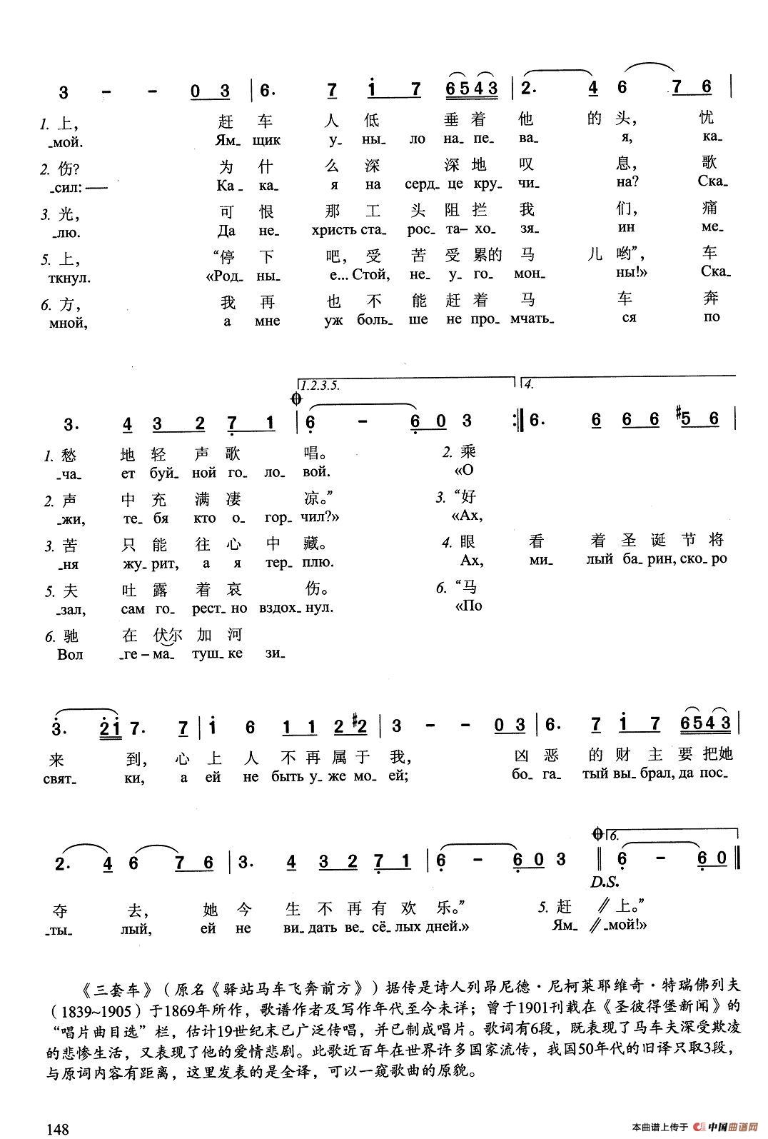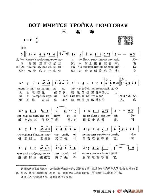 曲谱:三套车Вот,мчится,тройка почтовая(中俄简谱)