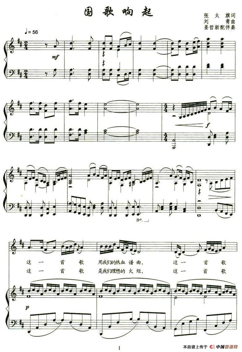 曲谱:国歌响起(张太旗词 刘青曲、正谱)