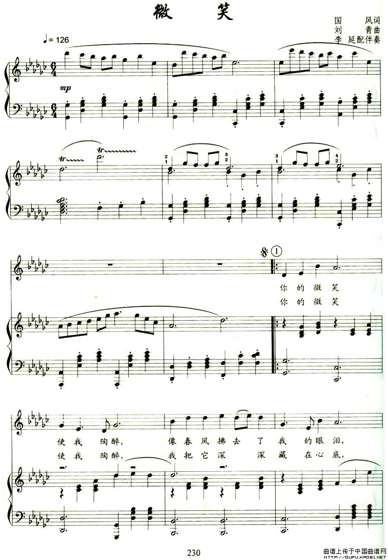 曲谱:微笑(国风词 刘青曲、正谱)