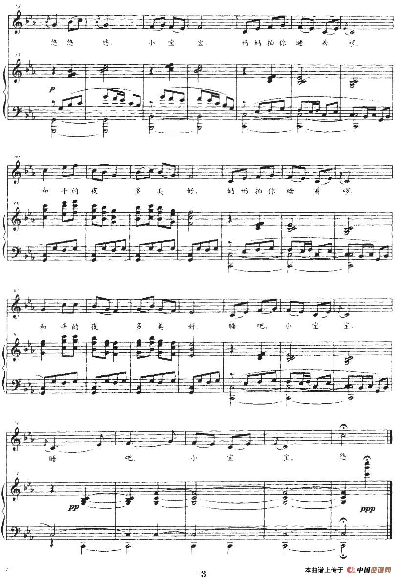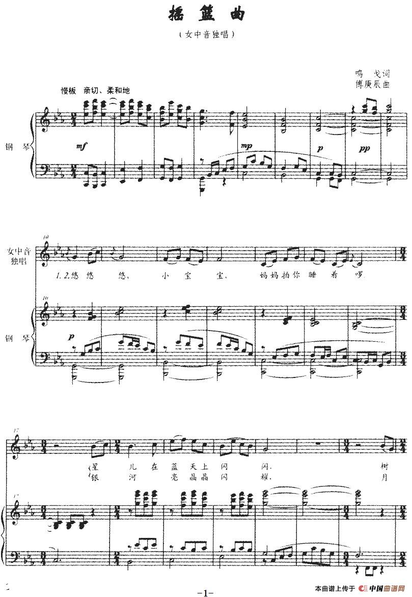 曲谱:摇篮曲(鸣戈词 傅庚辰曲、正谱)