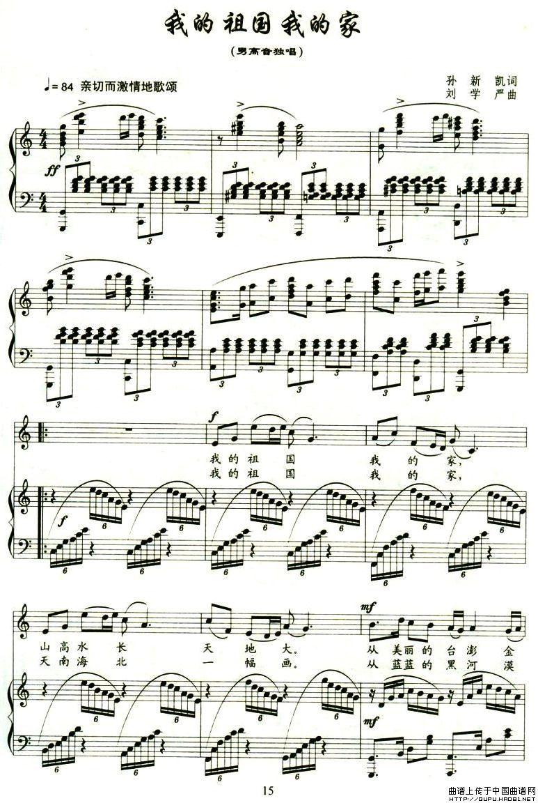 曲谱:我的祖国我的家(孙新凯词 刘学严曲、正谱)