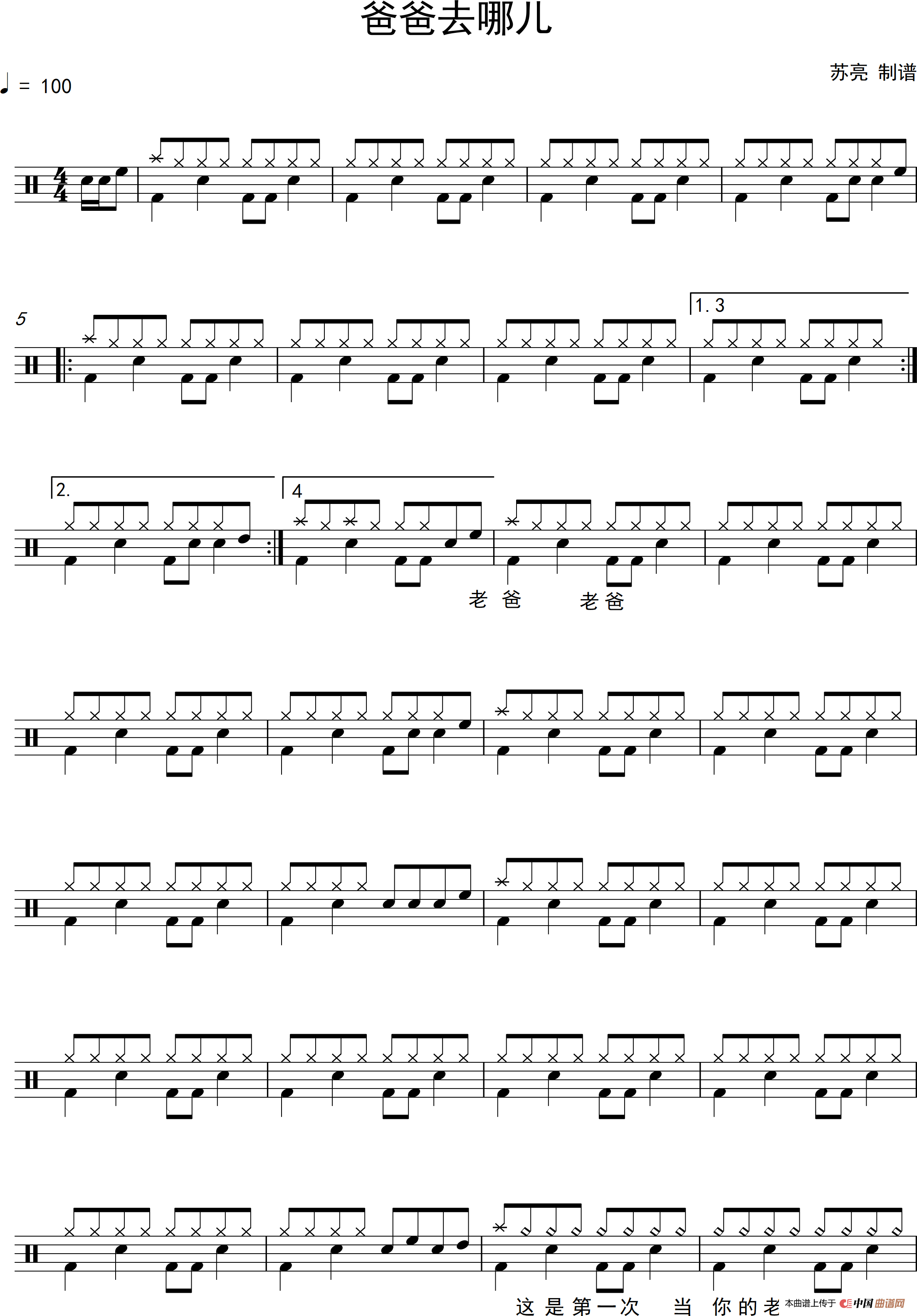 曲谱:爸爸去哪儿(八分音符运用)