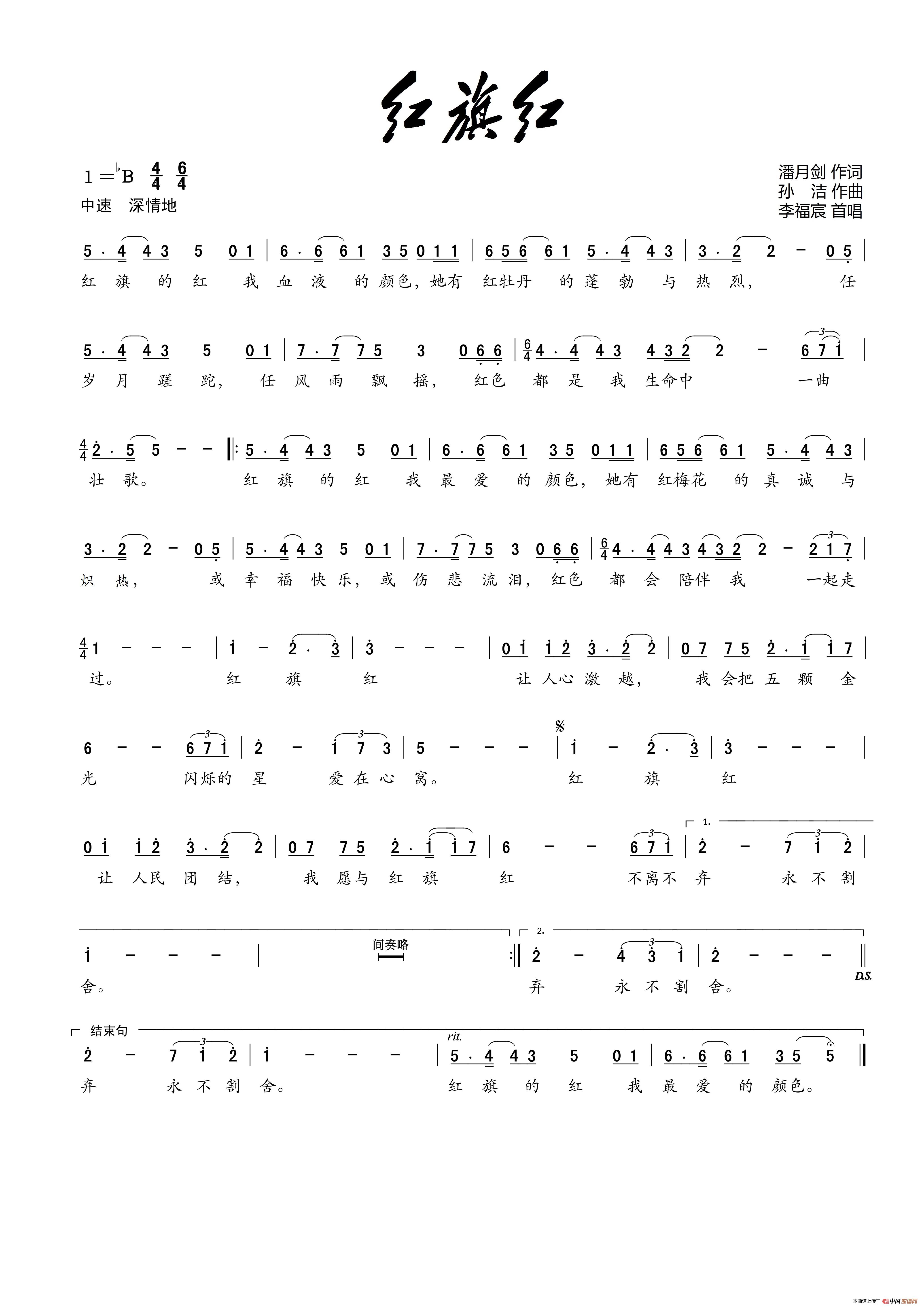 曲谱:红旗红