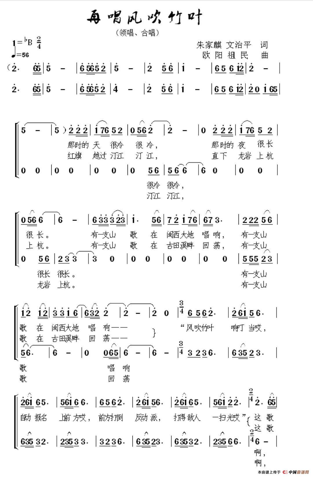 曲谱:再唱风吹竹叶