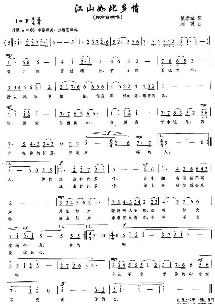 曲谱:江山如此多情
