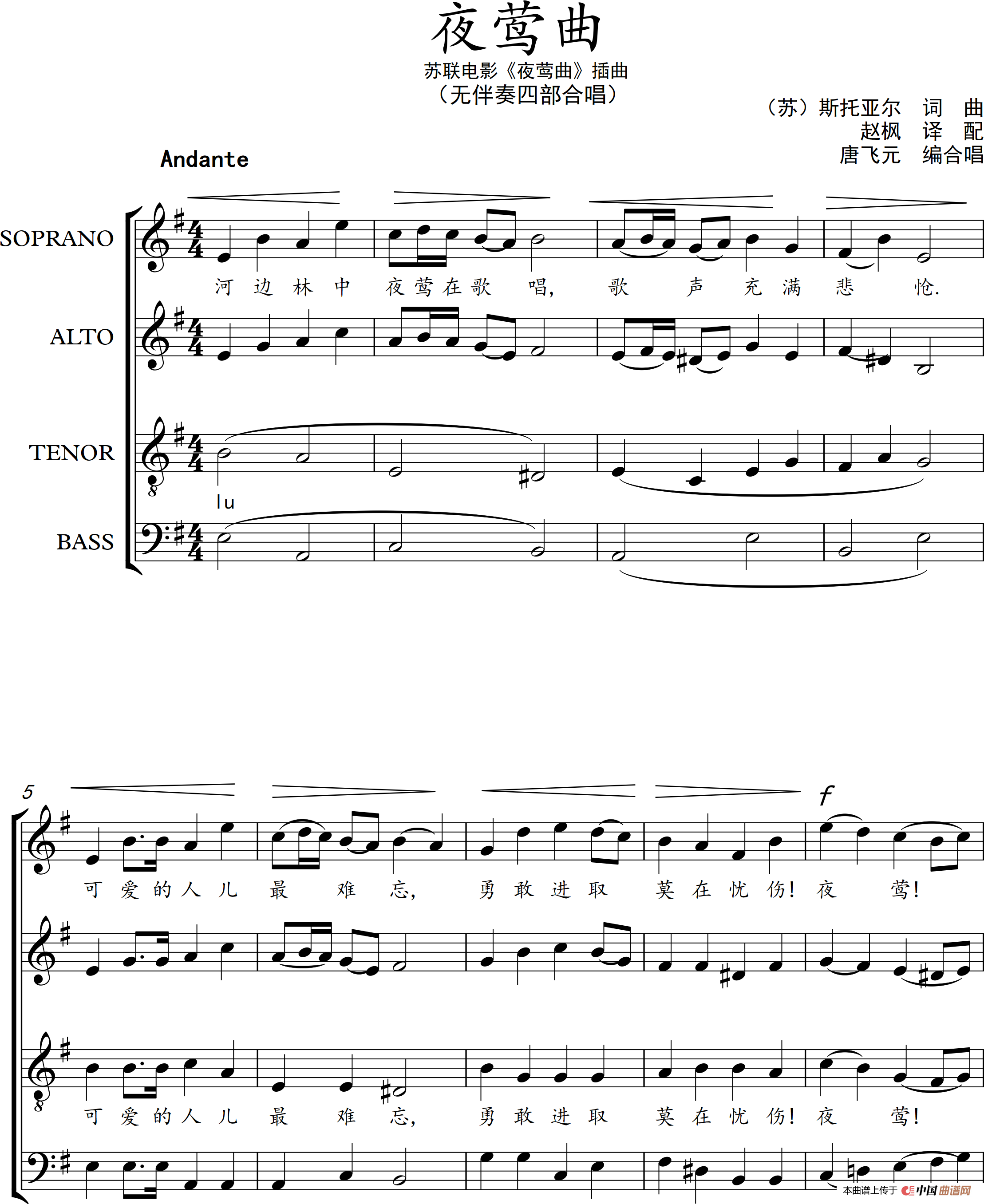 根据苏联作曲家斯托亚尔的电影插曲《夜莺曲》改编。