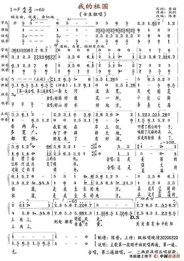 曲谱:我的祖国(女声独唱)