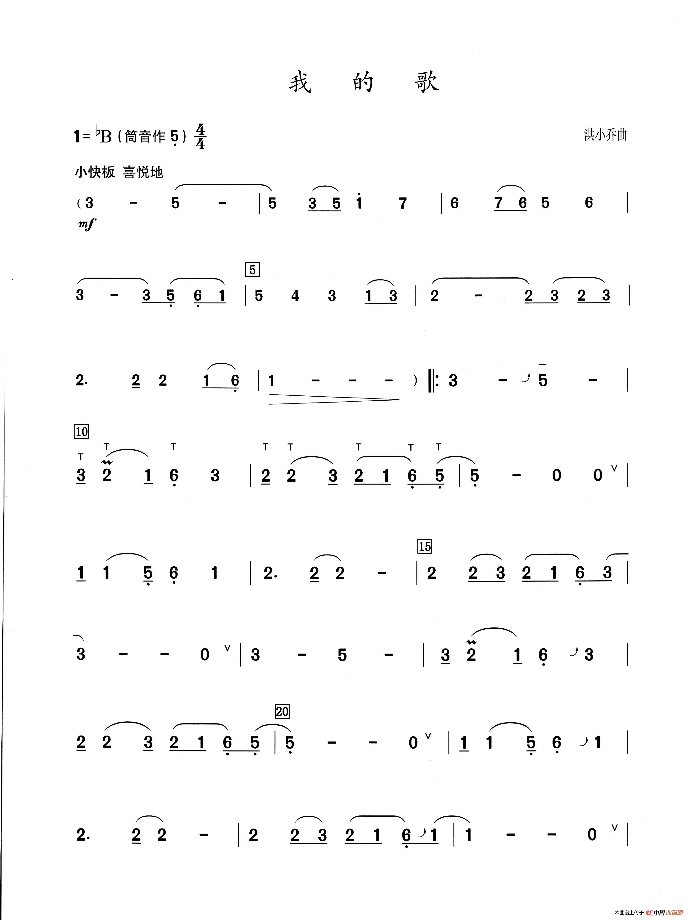 曲谱:我的歌(葫芦丝演奏提示版)