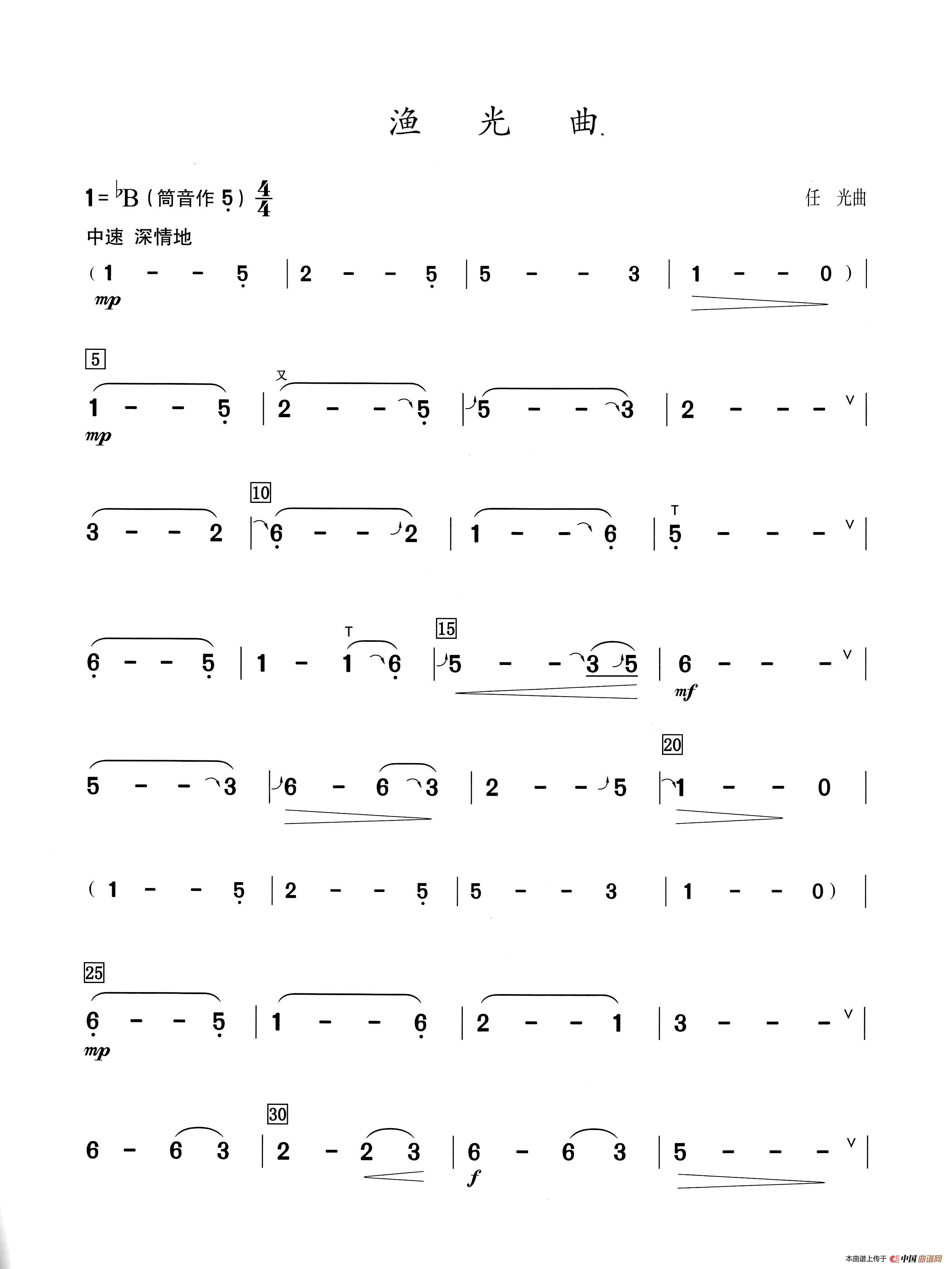 曲谱:渔光曲(葫芦丝演奏提示版)