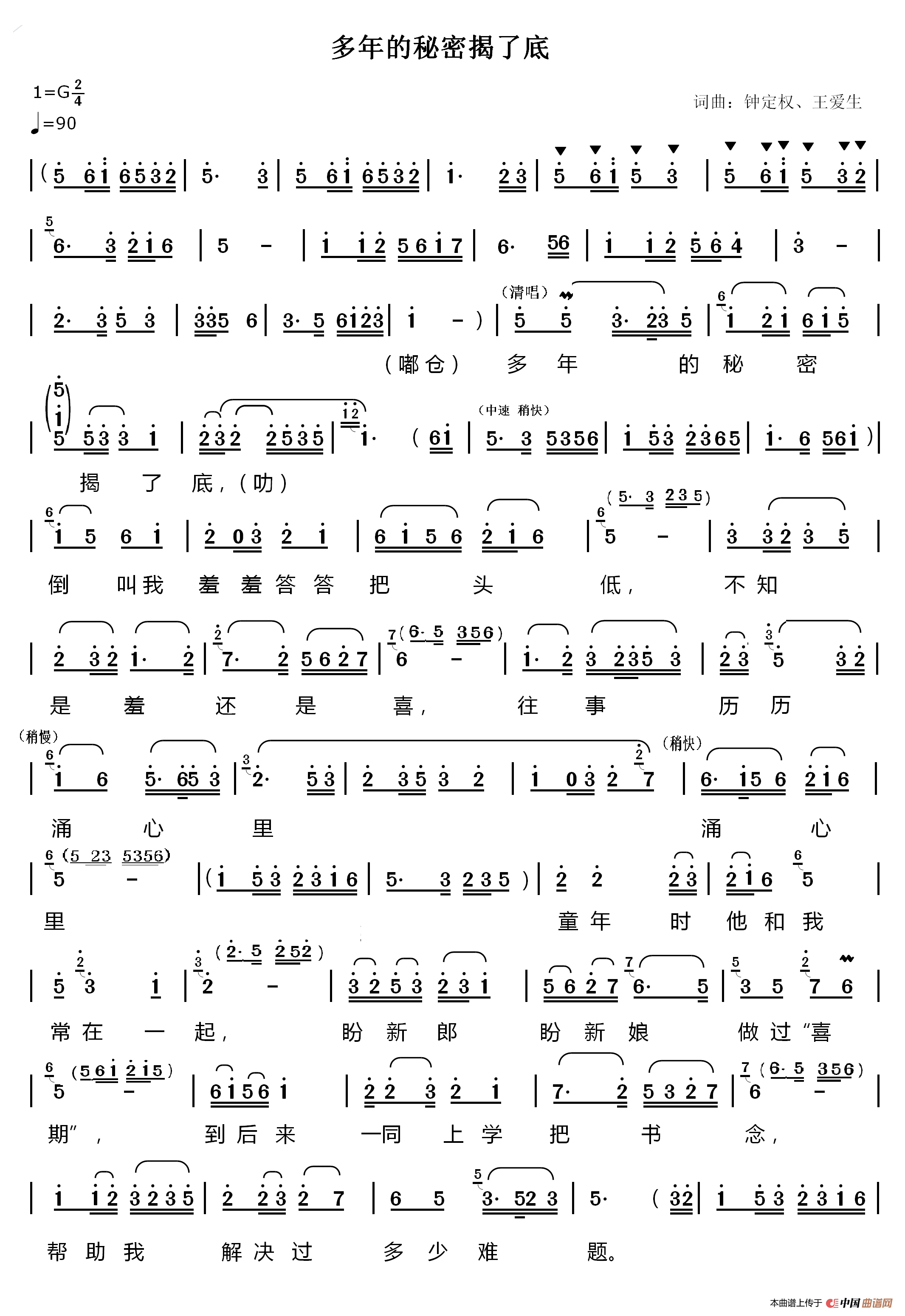 曲谱:多年的秘密揭了底