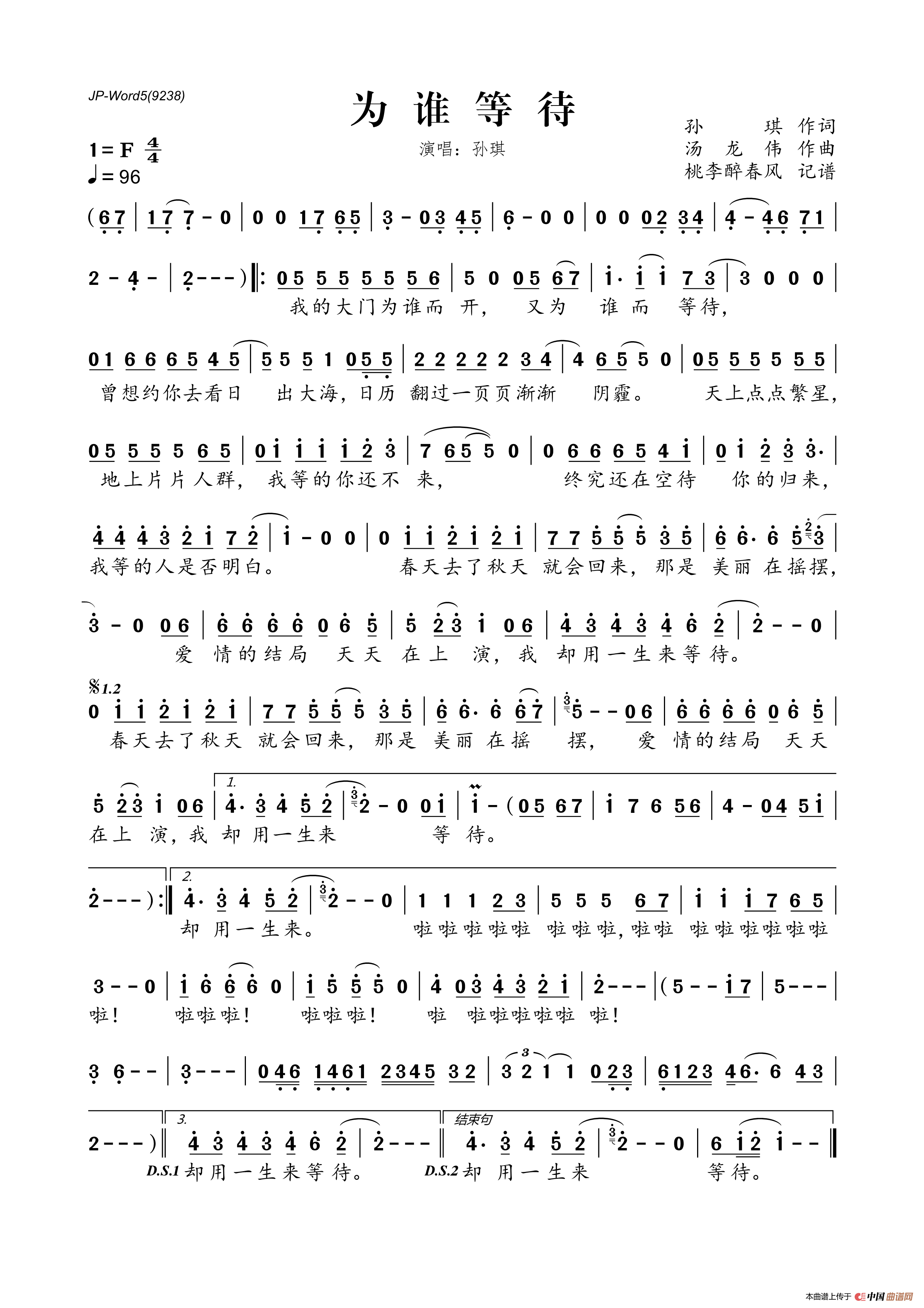 中国曲谱网所有曲谱及资料均为作者提供或网友推荐收集整理而来,仅供爱好者学习和研究使用,版权归原作者所有。如本站内容有侵犯您的合法权益,请和我们取得联系,我们将立即改正或删除。