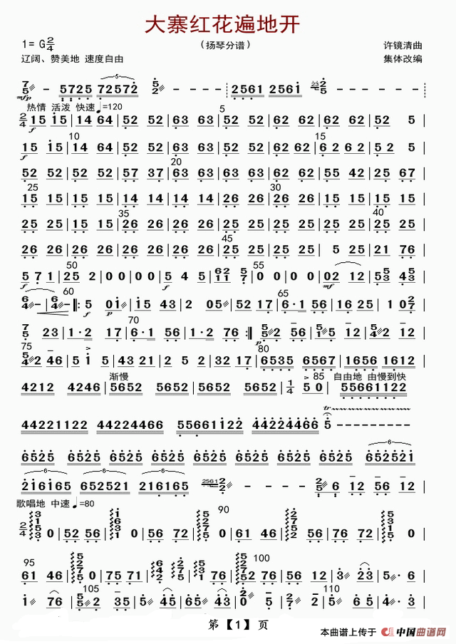 曲谱:大寨红花遍地开(扬琴两页分谱)