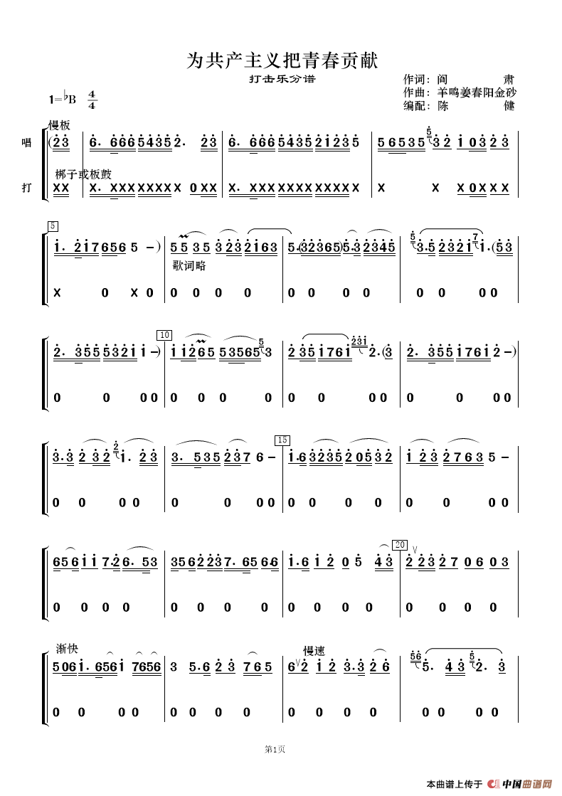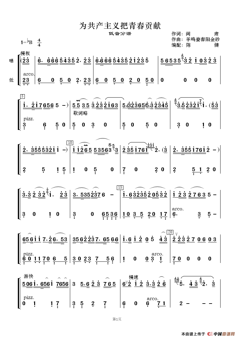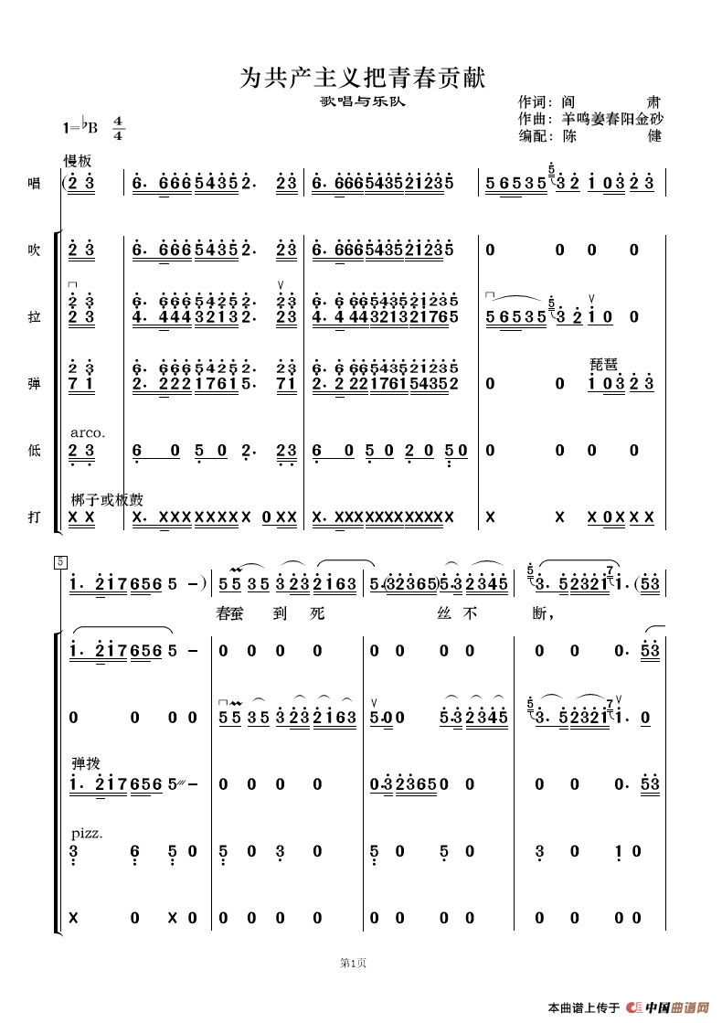 曲谱:为共产主义把青春贡献(歌唱与乐队)