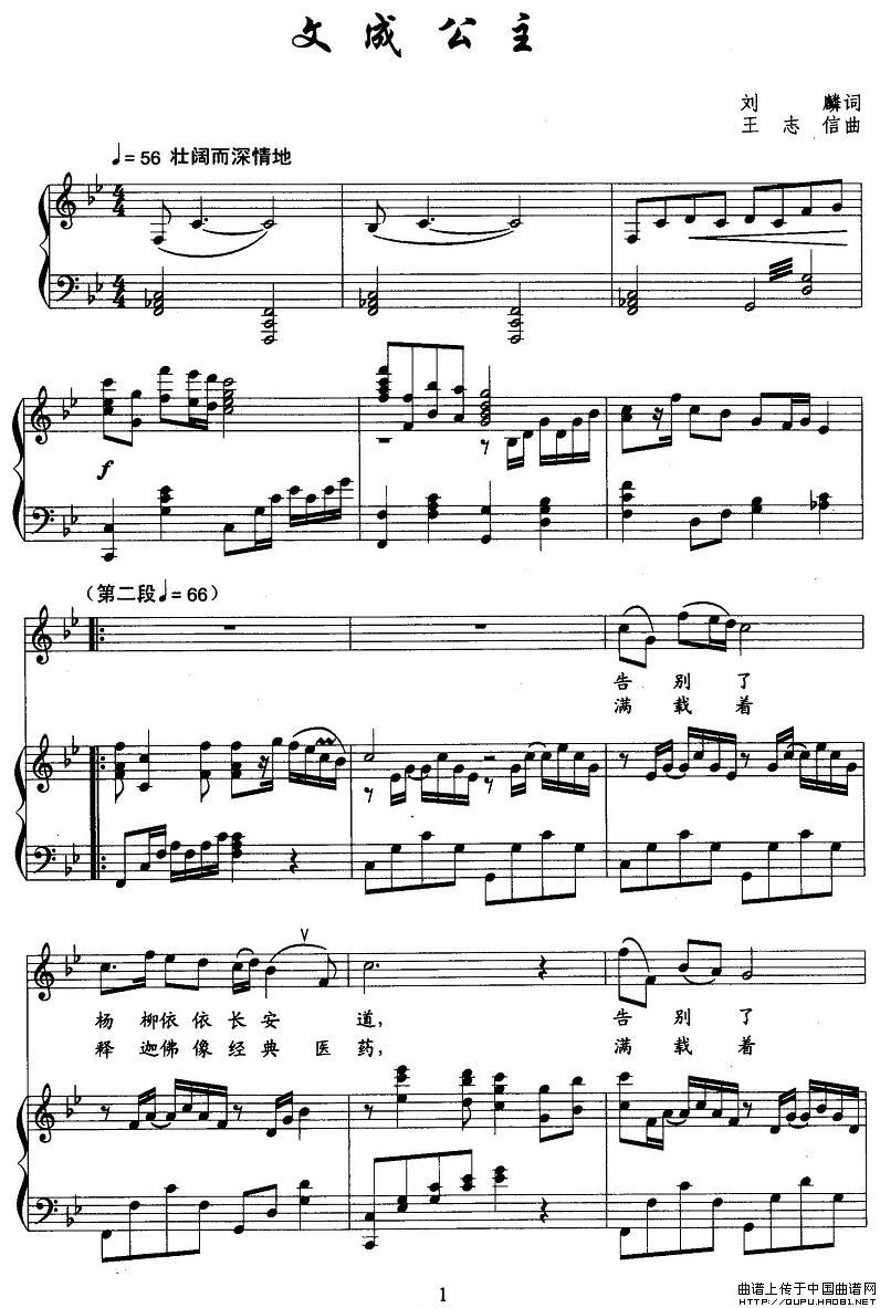 曲谱:文成公主(刘麟词 王志信曲、正谱)