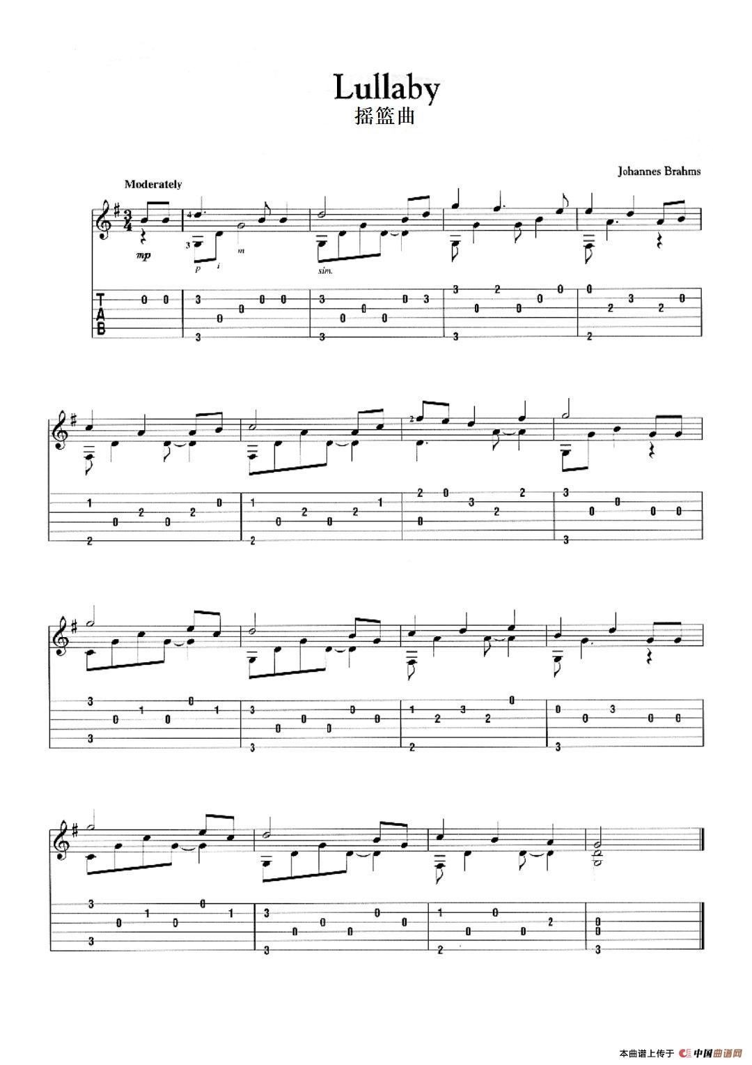 曲谱:摇篮曲(古典吉他独奏谱 五线谱)
