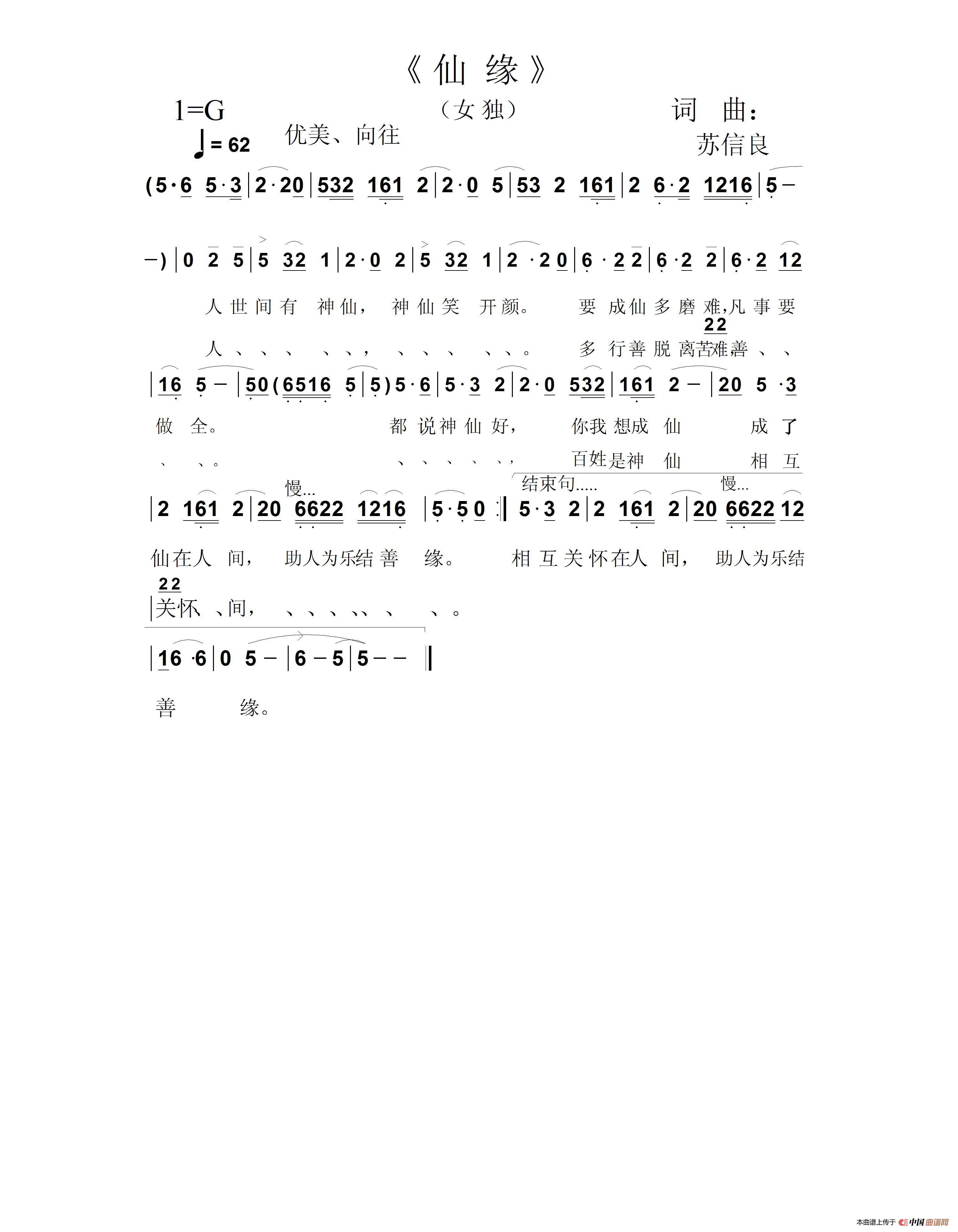 曲谱:仙缘(通俗)