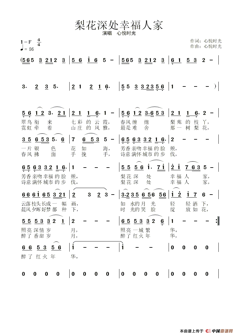曲谱:梨花深处幸福人家(心悦时光)