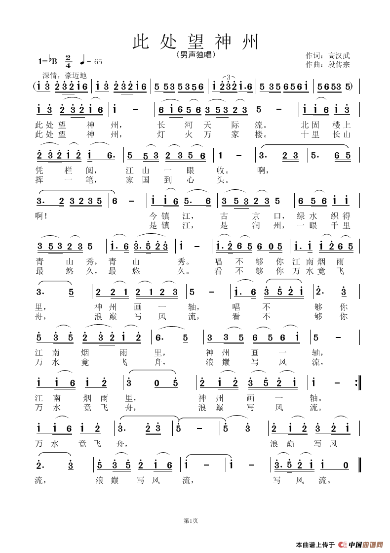 曲谱:此处看神州
