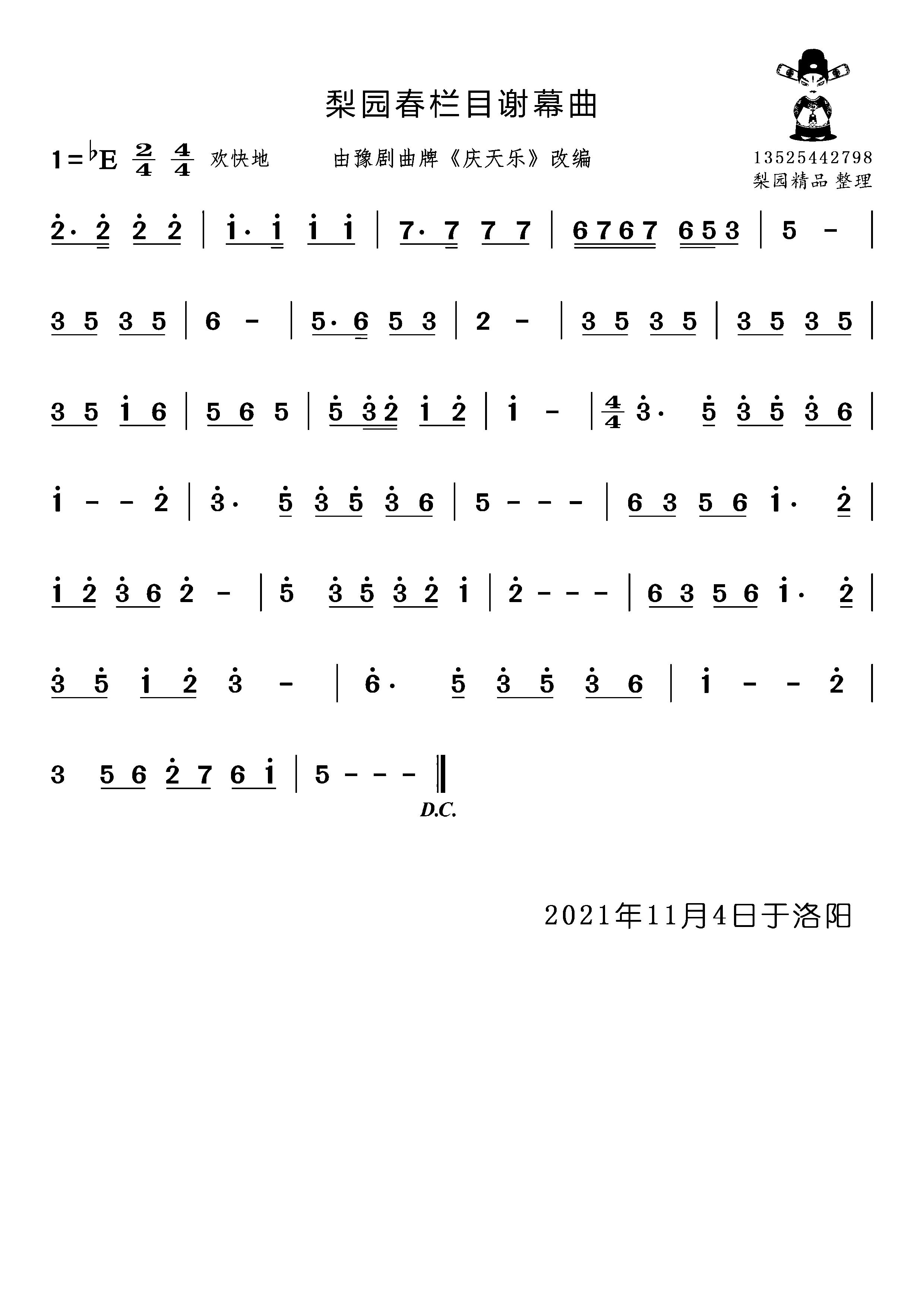 曲谱:梨园春谢幕曲(梨园春结束曲)