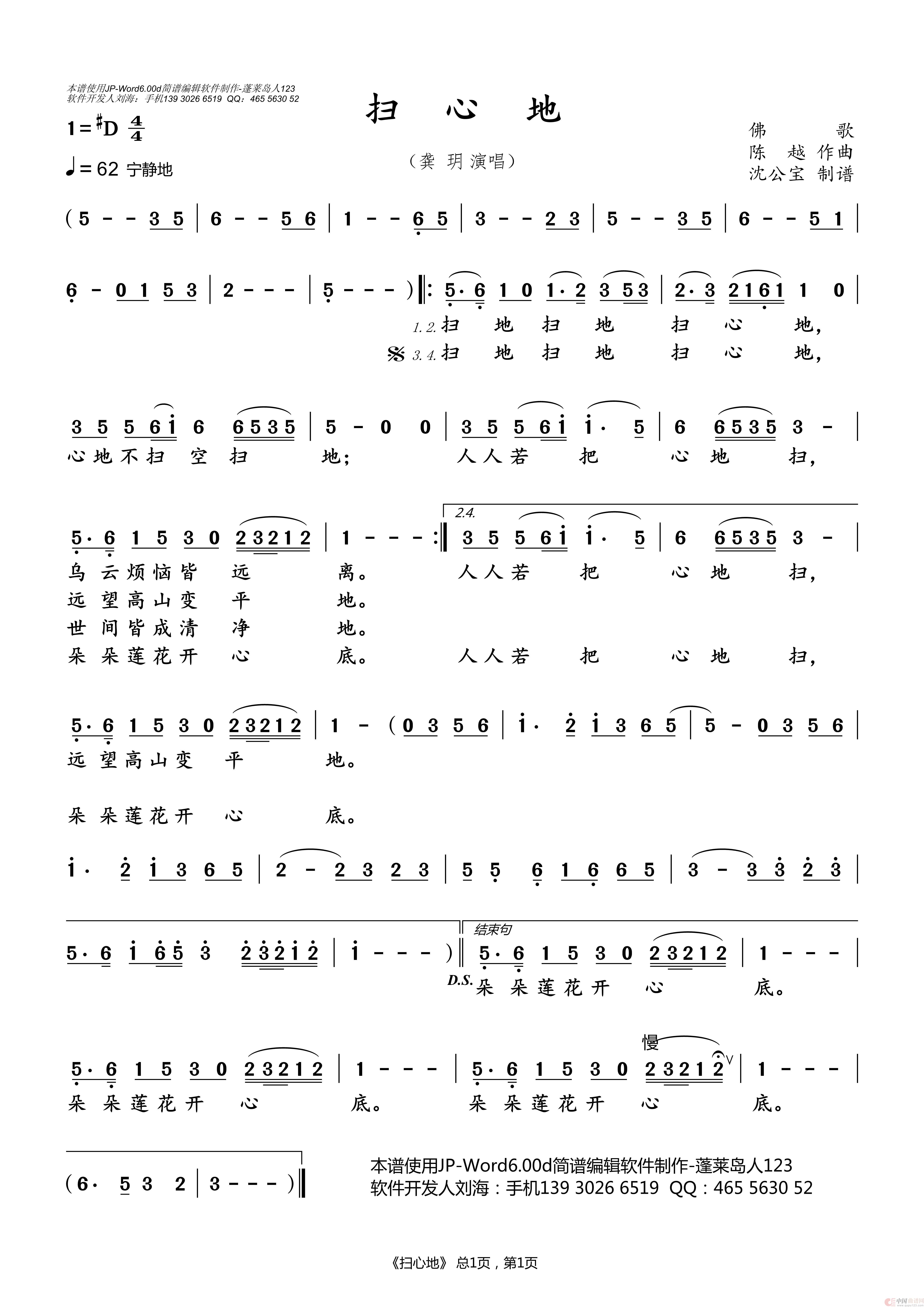 曲谱:扫心地