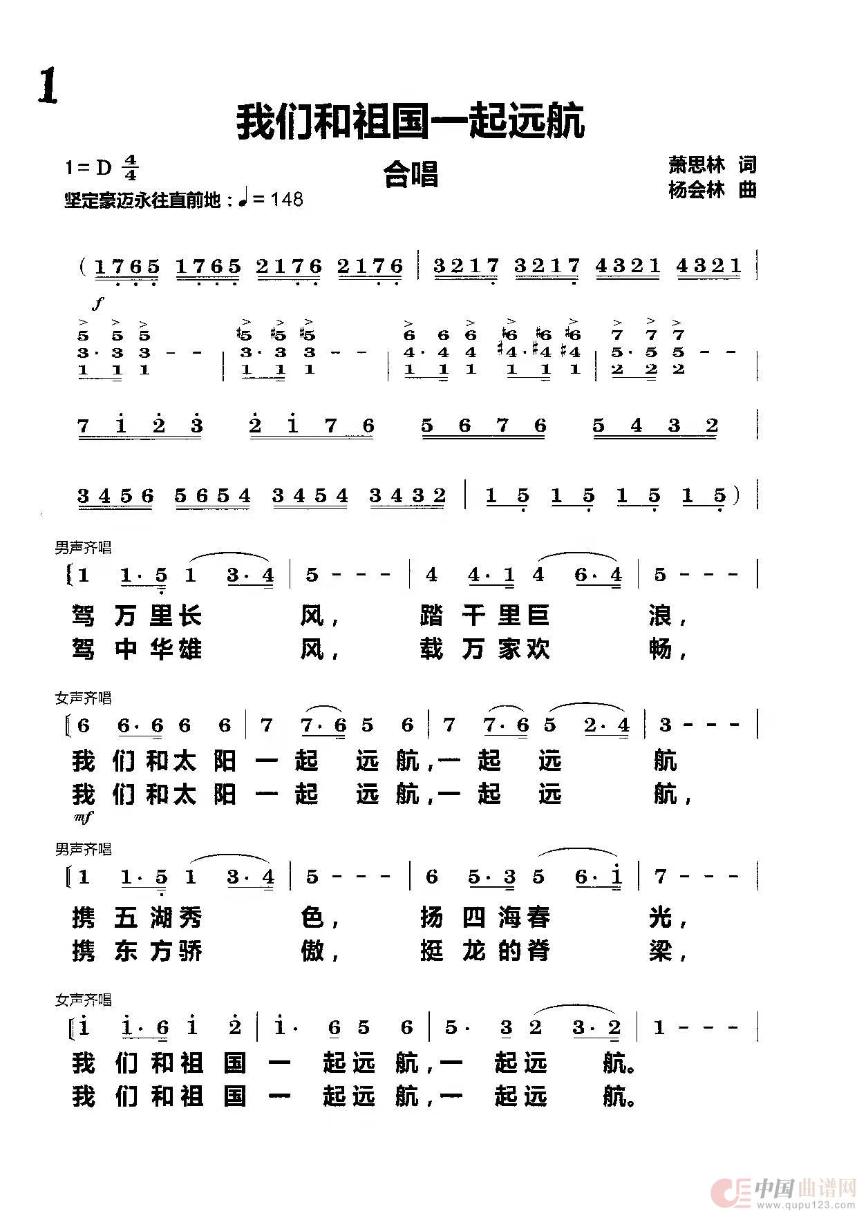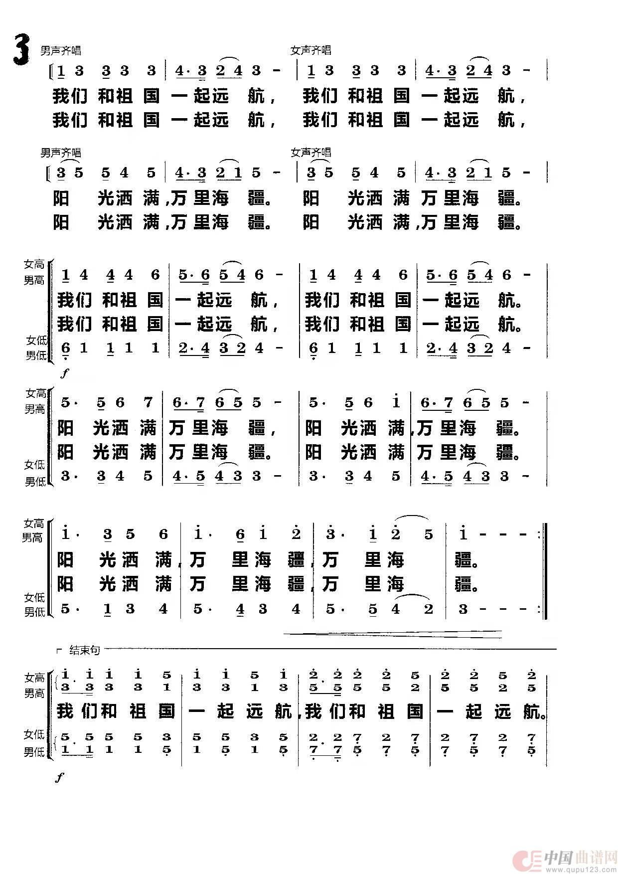 曲谱:我们和祖国一起远航(合唱)