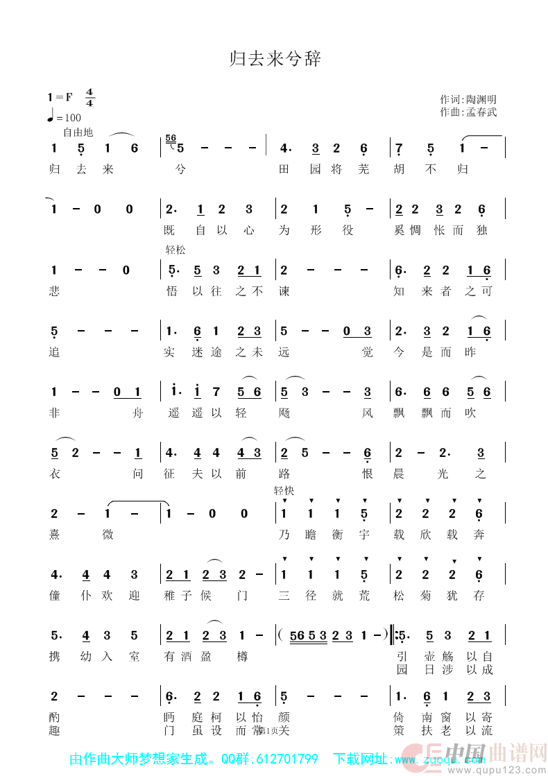 中国曲谱网所有曲谱及资料均为作者提供或网友推荐收集整理而来,仅供爱好者学习和研究使用,版权归原作者所有。如本站内容有侵犯您的合法权益,请和我们取得联系,我们将立即改正或删除。