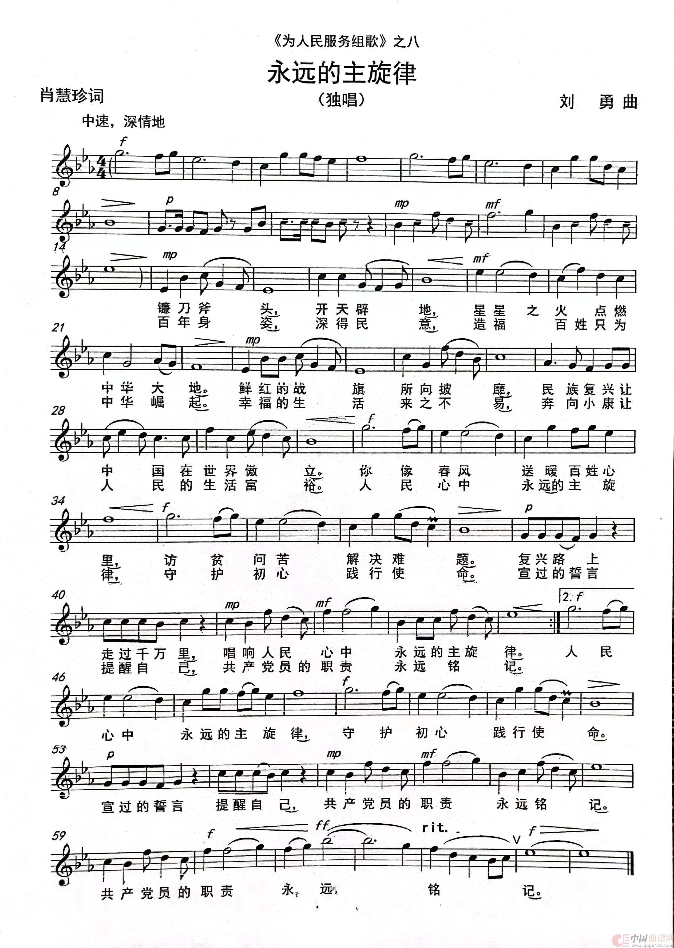 曲谱:《永远的主旋律》 (独唱)(《为人民服务组歌》之八)