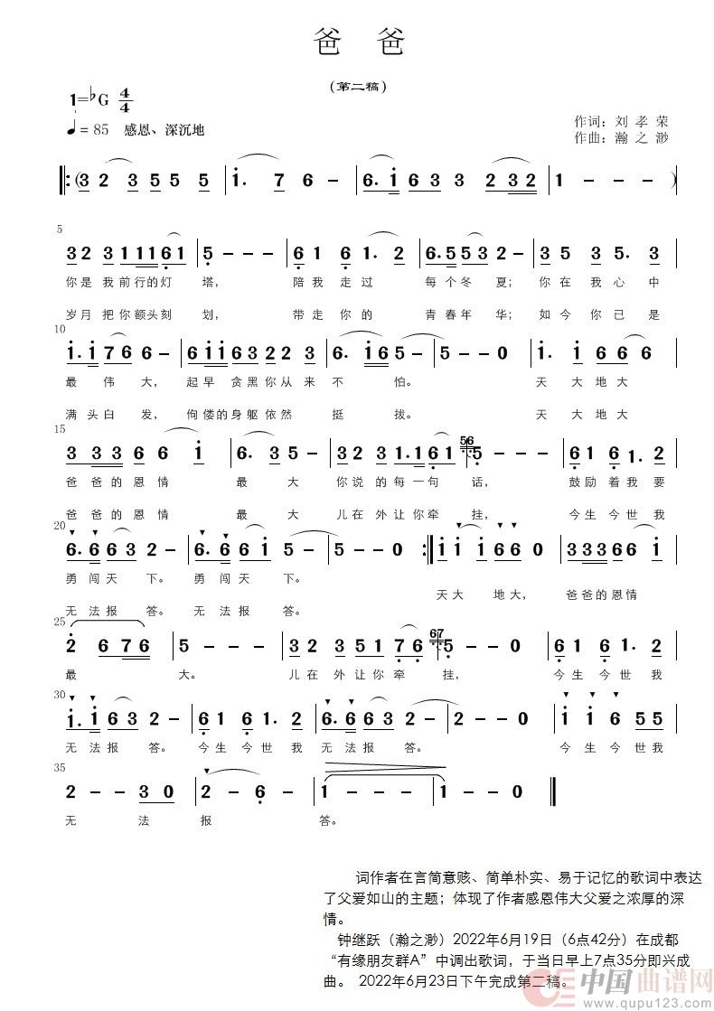 中国曲谱网所有曲谱及资料均为作者提供或网友推荐收集整理而来,仅供爱好者学习和研究使用,版权归原作者所有。如本站内容有侵犯您的合法权益,请和我们取得联系,我们将立即改正或删除。