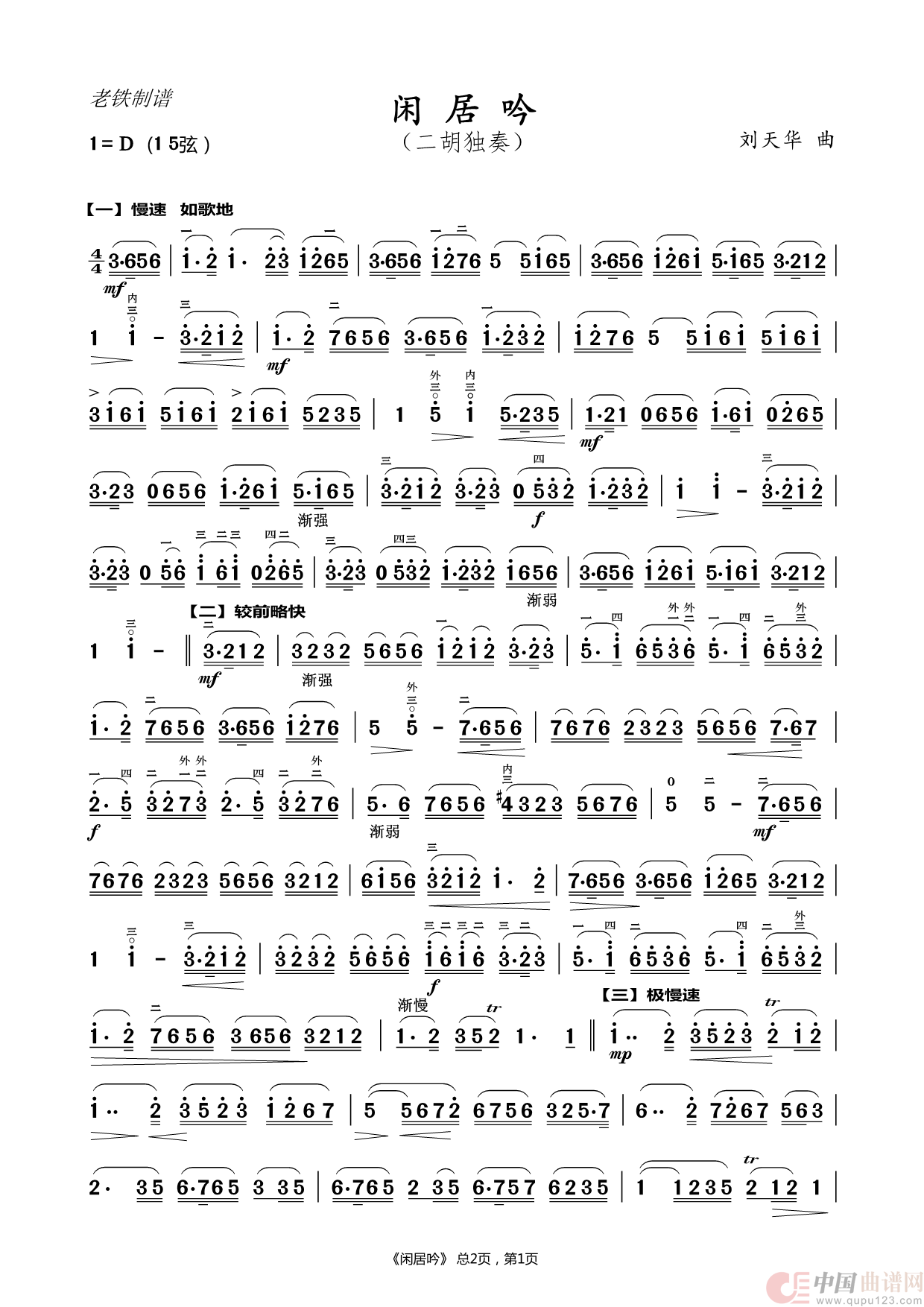 曲谱:闲居吟(二胡独奏)